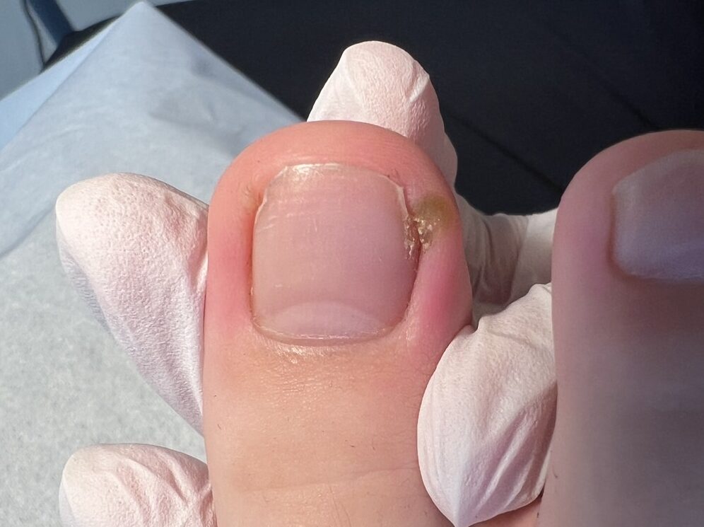 陥入爪は、爪の端が周囲の皮膚に食い込む状態を指します。この状態は、爪が正しく切られていない場合や、靴がきつすぎる場合に発生しやすいです。また、遺伝的要因や爪の形状が原因で陥入爪になりやすいこともあります。特に足の親指に多く見られ、爪の両側または片側に発生することが一般的です。